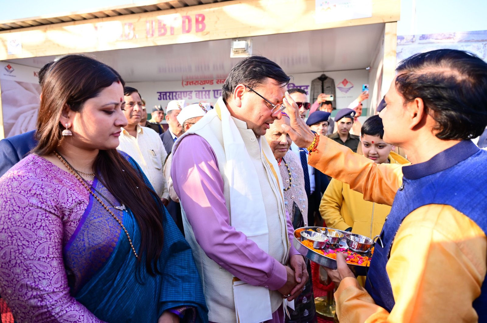 उत्तर प्रदेश के प्रयागराज में रविवार को उत्तराखण्ड के मुख्यमंत्री श्री पुष्कर सिंह धामी ने महाकुंभ 2025 में स्थापित किए गए उत्तराखण्ड मंडपम का अवलोकन किया। इस दौरान मुख्यमंत्री ने वहां मौजूद तीर्थ यात्रियों से मुलाकात की और उनकी कुशलक्षेम जानकारी ली। मुख्यमंत्री के दिशा-निर्देशों पर राज्य सरकार द्वारा महाकुंभ में उत्तराखण्ड मंडपम की स्थापना की गई है, जिससे उत्तराखण्ड की सांस्कृतिक और धार्मिक धरोहर का प्रदर्शन किया जा रहा है।