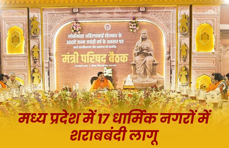 भोपाल: मध्य प्रदेश सरकार की कैबिनेट बैठक में ऐतिहासिक निर्णय लेते हुए राज्य के 17 धार्मिक नगरों में शराबबंदी लागू करने का फैसला किया गया है। यह प्रतिबंध एक अप्रैल 2025 से प्रभावी होगा। मुख्यमंत्री डॉ. मोहन यादव ने जानकारी दी कि इन नगरों की शराब दुकानें स्थायी रूप से बंद कर दी जाएंगी और इन्हें अन्यत्र शिफ्ट नहीं किया जाएगा।