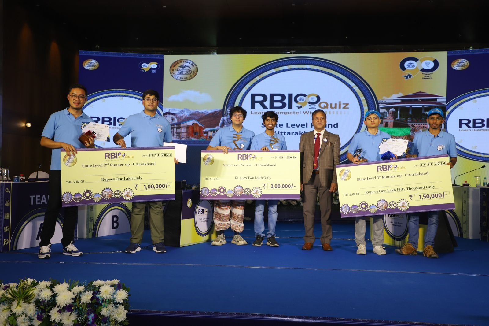 उत्तराखंड में RBI90 क्विज़ का राज्य-स्तरीय राउंड होटल हयात सेंट्रिक, देहरादून में आयोजित किया गया, जहां 72 विद्यार्थियों की 36 टीमों ने हिस्सा लिया। इस प्रतियोगिता में वेदांत द्विवेदी, तनय कपाड़िया, और आईआईटी रुड़की की टीम ने पहला स्थान प्राप्त किया, जबकि एमबी पीजी कॉलेज और एनआईटी उत्तराखंड की टीमें क्रमशः दूसरे और तीसरे स्थान पर रहीं।