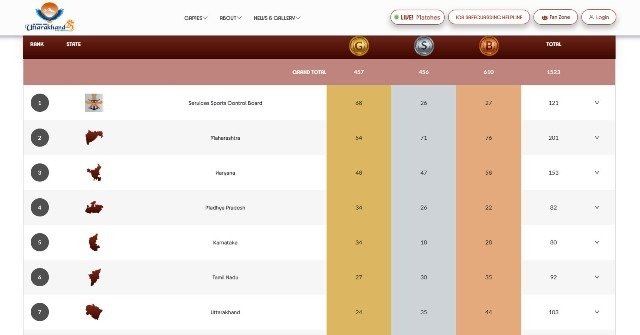 • सर्विसेज – 68 स्वर्ण, 26 रजत, 27 कांस्य (कुल 121 पदक)